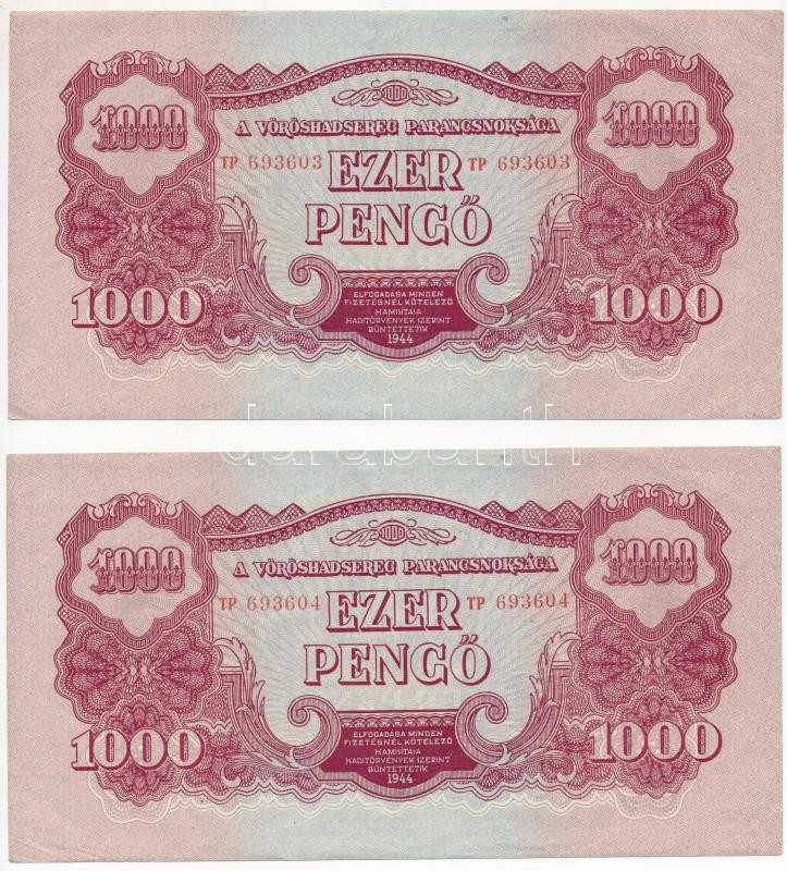 Beschreibung: 1944. 1000P "A Vöröshadsereg Parancsnoksága" (2x) sorszámkövetők T:II,II- /