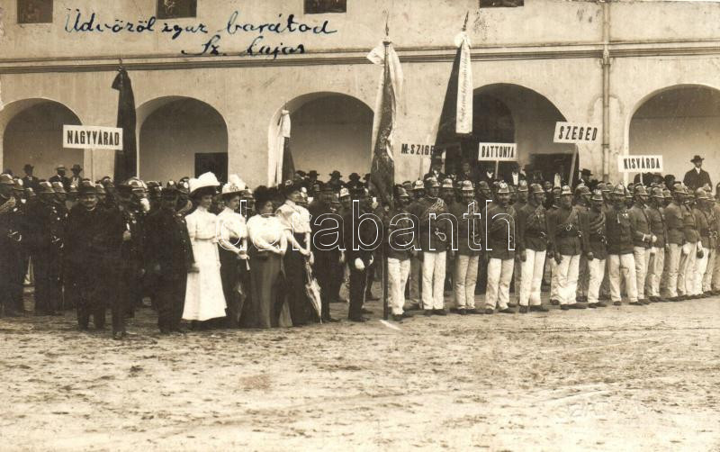 1908 Szatmárnémeti, Magyar tűzoltók találkozója / Hungarian firefighte... https://www.darabanth.com/de/25-Gross-Auktion/25.1/Postkarten-Topographie-Weltweit/Siebenburgen~9811/1908-Szatmarnemeti-Magyar-tuzoltok-talalkozoja-Hungarian-firefighters-meeting-Toth-photo~II1376210