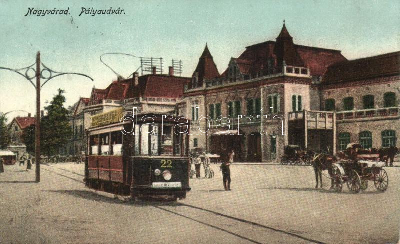 Nagyvárad, Vasútállomás, 22-es villamos / railway station, tram https://www.darabanth.com/de/25-Gross-Auktion/25.1/Postkarten-Topographie-Weltweit/Siebenburgen~9811/Nagyvarad-Vasutallomas-22-es-villamos-railway-station-tram~II1369576