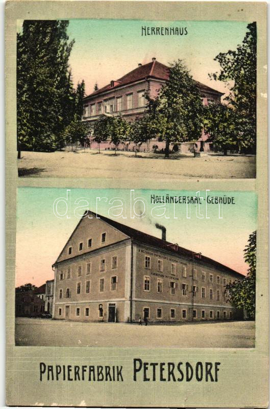 Péterfalva, Petersdorf, Petresti; Papírgyár. Papierfabrik, Herrenhaus,... https://www.darabanth.com/de/25-Gross-Auktion/25.1/Postkarten-Topographie-Weltweit/Siebenburgen~9811/Peterfalva-Petersdorf-Petresti-Papirgyar-Papierfabrik-Herrenhaus-Hollandersaal-Gebaude-~II1377943