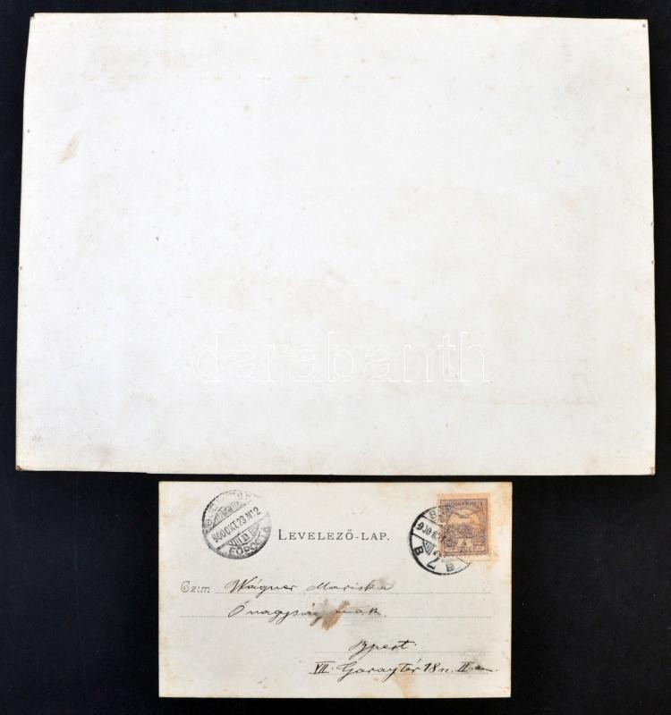 Vöröskő, Cerveny Kamen; Bibervár; képeslap + eredeti fotó Morelli Gusztáv fametsző tanár műhelyéből. Igen ritka párosítás, mindkét darab jó állapotban / Art Nouveau topographic postcard (14.5 × 9 cm) + original postcard design (26 × 19 cm) with hand-drawn decoration. A rare and most interesting combination, both in good condition
