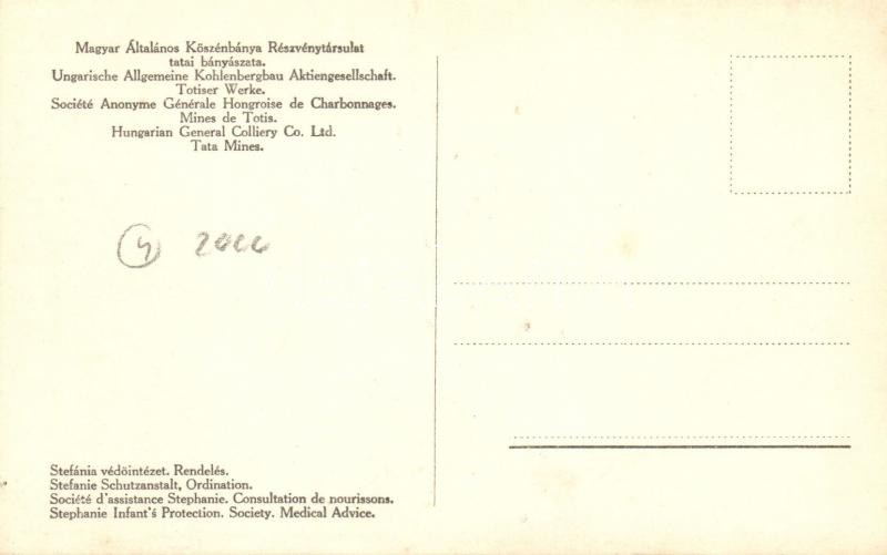 Beschreibung: Tata, a Magyar Általános Kőszénbánya Részvénytársulat tatai bányászata, Stefánia védőintézet, rendelés