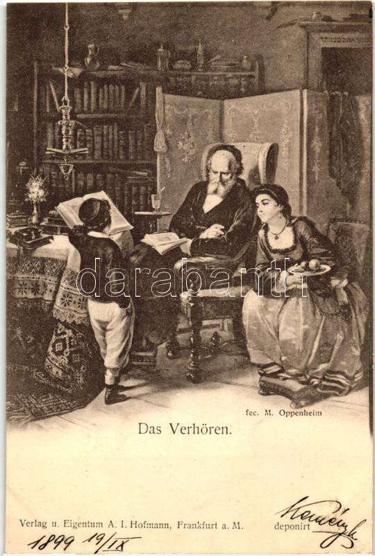 Beschreibung: 1899 Das Verhören, Verlag und Eigentum A. I. Hoffmann, Frankfurt / The Examination, Judaica s: M. Oppenheim