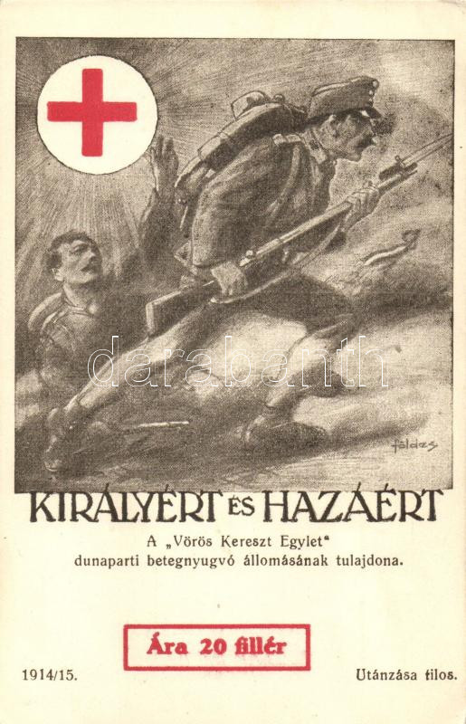 Királyért és hazáért; Vörös kereszt Egylet dunaparti betegnyugvó állom... https://www.darabanth.com/de/25-Gross-Auktion/25.1/Thematik-und-Kunstlerkarten/Militaria~9889/Kiralyert-es-hazaert-Voros-kereszt-Egylet-dunaparti-betegnyugvo-allomasanak-tulajdona-~II1372165