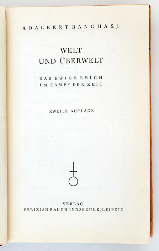 Bangha Adalbert: Welt und Überwelt. Das ewige Reich im Kampf der Zeit.... https://www.darabanth.com/de/250-Fernauktion/250.0/Andere-Sammelgebiete/Bucher-Andere-Sprachen~1400025/Bangha-Adalbert-Welt-und-Uberwelt-Das-ewige-Reich-im-Kampf-der-Zeit-Innsbruck-Leipzig-Felizian~II1208478