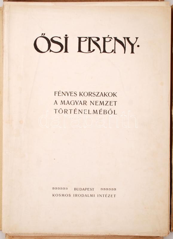 Ősi Erény fényes korszakok a magyar nemzet történelméből. 39 darab fénymetszettel melyeket híres hazai festők képei tesznek ki. Bp.,é.n., Kosmos Irodalmi Intézet. Kissé viseltes illusztrált kiadói egészvászon kötésben.