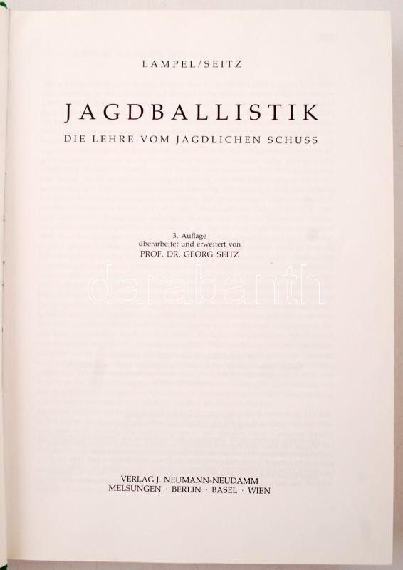 Lampel, Walter - Seitz, Georg: Jagdballastik. Die Lehre vom jagdlichen Schuss. Melsungen, 1983, Verlag J. Neumann-Neudamm. Kartonált papírkötésben, jó állapotban. /