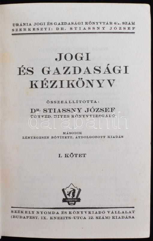 dr. Stiassny József: Jogi és gazdasági kézikönyv I.-II.. Bp., é.n. Sz... https://www.darabanth.com/de/250-Fernauktion/250.0/Andere-Sammelgebiete/Bucher-Justiz~1400007/dr-Stiassny-Jozsef-Jogi-es-gazdasagi-kezikonyv-I-II-Bp--en-Szekely-nyomda-Aranyozot~II1201836