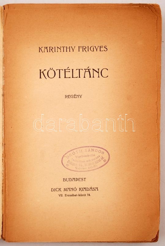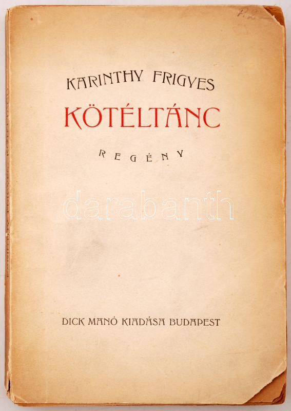 Karinthy Frigyes: Kötéltánc. Bp., [1923], Dick Manó. Első kiadás! Kopo... https://www.darabanth.com/de/250-Fernauktion/250.0/Andere-Sammelgebiete/Bucher-Sonstige-Raritaten~1400029/Karinthy-Frigyes-Koteltanc-Bp-1923-Dick-Mano-Elso-kiadas-Kopottas-papirkotesben-a~II1206260