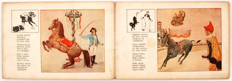 Beschreibung: Kis cirkusz. K. Sávely Dezső rajzai, Tábori Piroska verseivel. Bp., Dante Könyvkiadó. Harmonikaszerűen kinyitható mesekönyv, javítva.