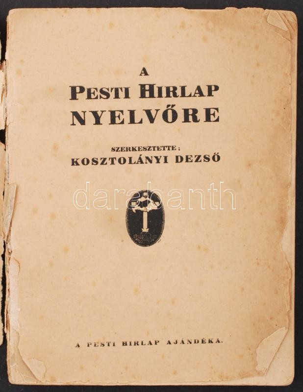 Kosztolányi Dezső: (szerk.): A Pesti Hírlap nyelvőre. A pesti Hírlap a... https://www.darabanth.com/de/250-Fernauktion/250.0/Andere-Sammelgebiete/Bucher-Sonstige-Raritaten~1400029/Kosztolanyi-Dezso-szerk-A-Pesti-Hirlap-nyelvore-A-pesti-Hirlap-ajandeka-Viseltes-kiadC3~II1056330
