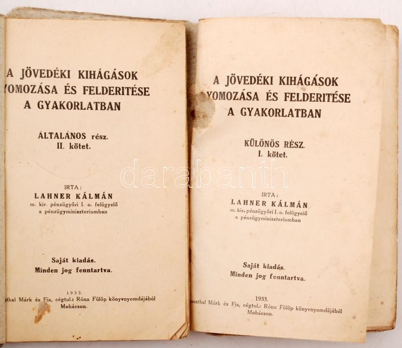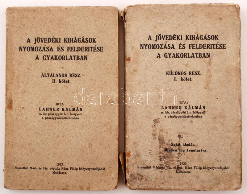 Lahner Kálmán: A jövedéki kihágások nyomozása és felderítése a gyakorl... https://www.darabanth.com/de/250-Fernauktion/250.0/Andere-Sammelgebiete/Bucher-Sonstige-Raritaten~1400029/Lahner-Kalman-A-jovedeki-kihagasok-nyomozasa-es-felderitese-a-gyakorlatban-1-2-kot-Kis~II1206159