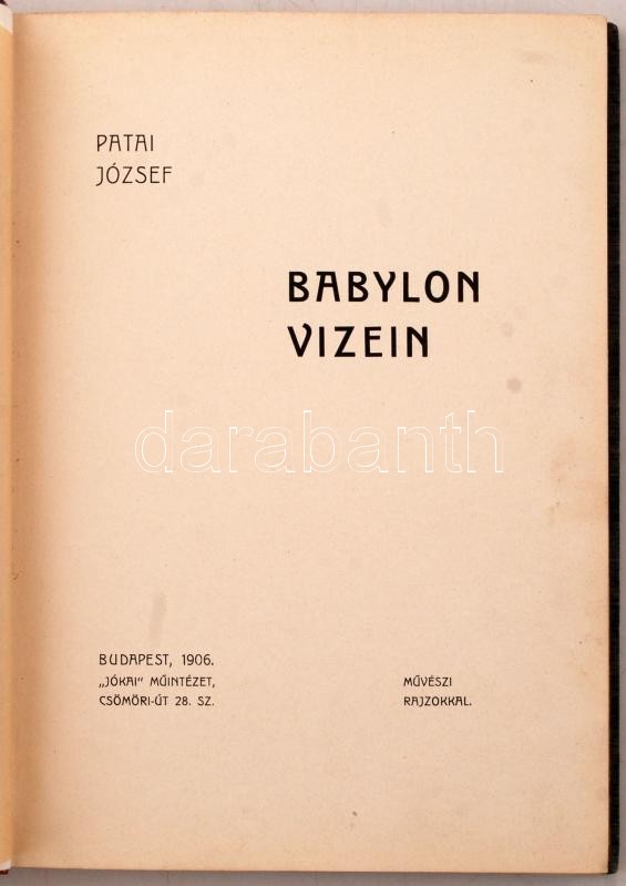 Patai József: Babylon vizein. Bp., 1906, Jókai Műintézet. Kopott, dísz... https://www.darabanth.com/de/250-Fernauktion/250.0/Andere-Sammelgebiete/Bucher-Sonstige-Raritaten~1400029/Patai-Jozsef-Babylon-vizein-Bp-1906-Jokai-Muintezet-Kopott-diszes-vaszonkotesben-egy~II1206372