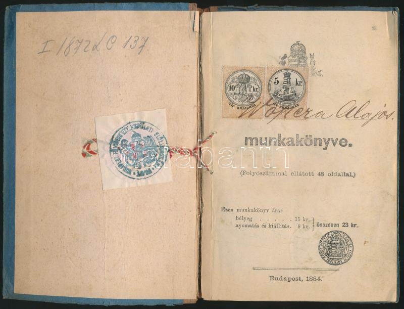 1884 Munkakönyv kővéső segéd részére néhány bejegyzéssel, pp.:48, 19x1... https://www.darabanth.com/de/250-Fernauktion/250.0/Andere-Sammelgebiete/Dokument~1400033/1884-Munkakonyv-koveso-seged-reszere-nehany-bejegyzessel-pp48-19x12cm~II1203878