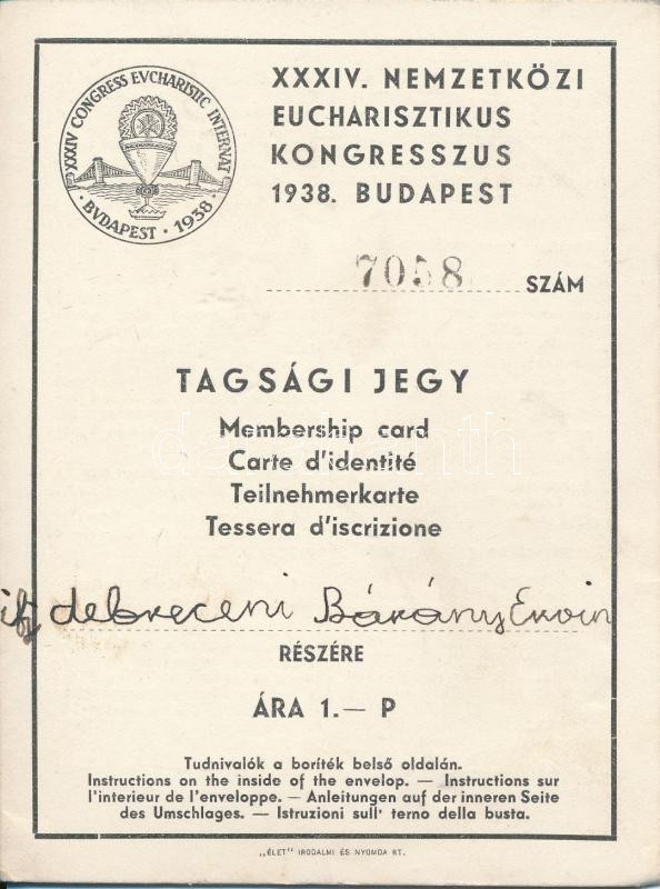 1938 XXXIV. Nemzetközi Eucharisztikus Kongresszus tagsági jegye, belse... https://www.darabanth.com/de/250-Fernauktion/250.0/Andere-Sammelgebiete/Dokument~1400033/1938-XXXIV-Nemzetkozi-Eucharisztikus-Kongresszus-tagsagi-jegye-belsejeben-kis-terkeppel-ulC5~II1203864