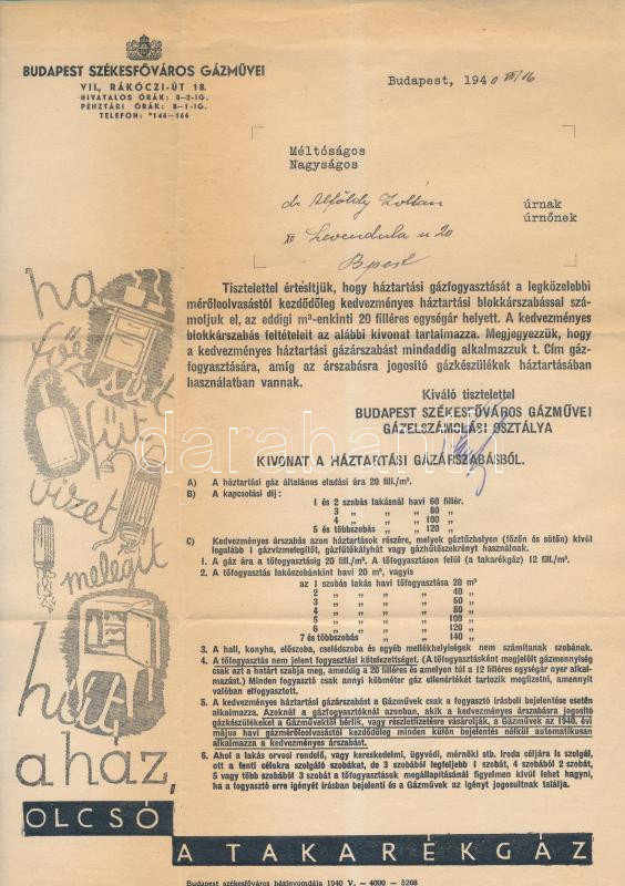 1940 Bp., Budapest Székesfőváros Gázművei által kiküldött reklámos lev... https://www.darabanth.com/de/250-Fernauktion/250.0/Andere-Sammelgebiete/Dokument~1400033/1940-Bp-Budapest-Szekesfovaros-Gazmuvei-altal-kikuldott-reklamos-levelpapirra-irt-ert~II1208291