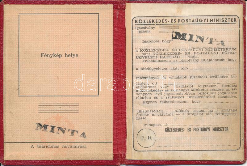 1959 Közlekedés-és Postaügyi Miniszter Minta! Igazolvány, 11x8cm https://www.darabanth.com/de/250-Fernauktion/250.0/Andere-Sammelgebiete/Dokument~1400033/1959-Kozlekedes-es-Postaugyi-Miniszter-Minta-Igazolvany-11x8cm~II1203166