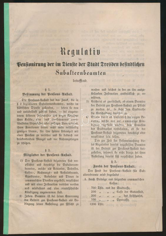 1867 Drezda város alkalmazottainak nyugdíjazásával kapcsolatos szabály... https://www.darabanth.com/de/250-Fernauktion/250.0/Andere-Sammelgebiete/Drucksachen~1400004/1867-Drezda-varos-alkalmazottainak-nyugdijazasaval-kapcsolatos-szabalyozas-nemet-nyelven-pp~II1204061