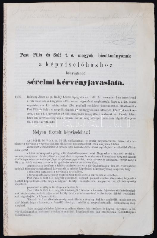 1867 Pest Pilis és Solt t.e. megyék bizottmányának a képviselőházához ... https://www.darabanth.com/de/250-Fernauktion/250.0/Andere-Sammelgebiete/Drucksachen~1400004/1867-Pest-Pilis-es-Solt-te-megyek-bizottmanyanak-a-kepviselohazahoz-benyujtando-serelmi-~II1202749