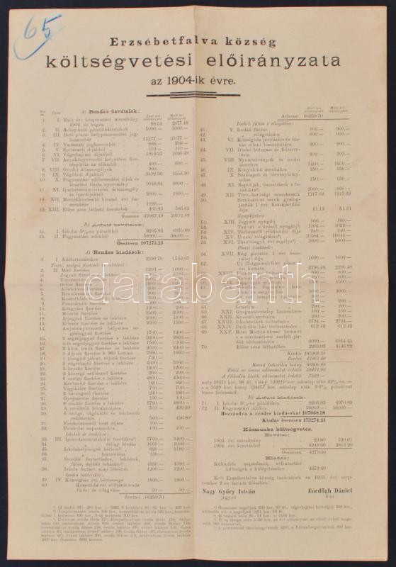 1904 Erzsébetfalva község költségvetési előirányzata, 42x29cm https://www.darabanth.com/de/250-Fernauktion/250.0/Andere-Sammelgebiete/Drucksachen~1400004/1904-Erzsebetfalva-kozseg-koltsegvetesi-eloiranyzata-42x29cm~II1204457