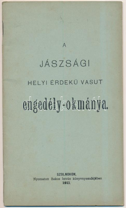 1911. A jászsági helyi érdekű vasút engedély-okmánya. Szolnok, 1911. B... https://www.darabanth.com/de/250-Fernauktion/250.0/Andere-Sammelgebiete/Drucksachen~1400004/1911-A-jaszsagi-helyi-erdeku-vasut-engedely-okmanya-Szolnok-1911-Bakos-Istvan-konyvnyom~II1097166