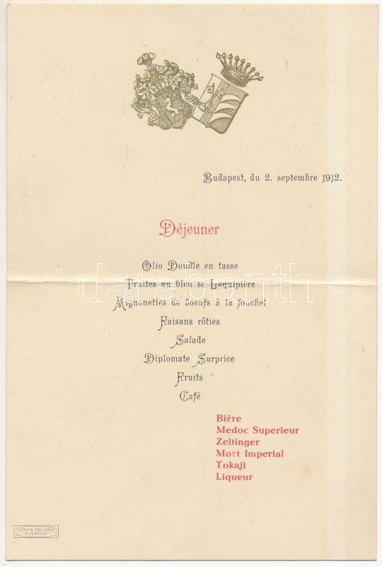 1912 Bp., A Margitszigeti Nagyszálló menükártyája https://www.darabanth.com/de/250-Fernauktion/250.0/Andere-Sammelgebiete/Drucksachen~1400004/1912-Bp-A-Margitszigeti-Nagyszallo-menukartyaja~II1208311