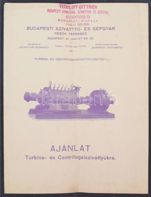 1915 Budapesti Szivattyú- és Gépgyár Részv. Társaság ajánlata Turbina-... https://www.darabanth.com/de/250-Fernauktion/250.0/Andere-Sammelgebiete/Drucksachen~1400004/1915-Budapesti-Szivattyu-es-Gepgyar-Reszv-Tarsasag-ajanlata-Turbina-ess-Centrifugaszivat~II1201419