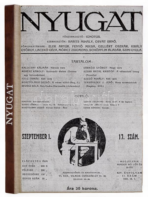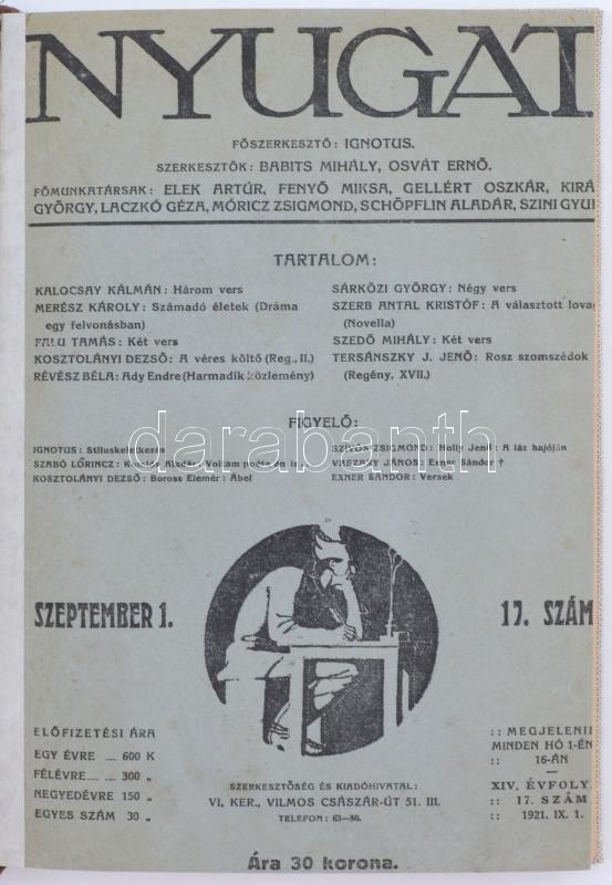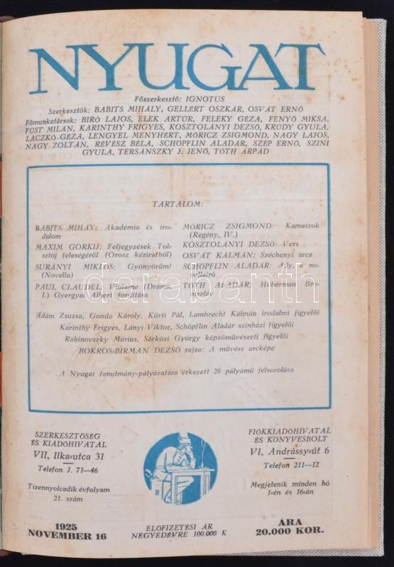 1921, 1925 A Nyugat című folyóirat két száma könyvbe kötve, benne Kosz... https://www.darabanth.com/de/250-Fernauktion/250.0/Andere-Sammelgebiete/Drucksachen~1400004/1921-1925-A-Nyugat-cimu-folyoirat-ket-szama-konyvbe-kotve-benne-Kosztolanyi-Dezso-Szerb-~II1201662
