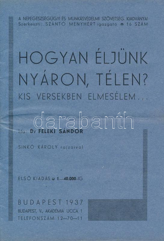 1937 Feleki Sándor dr.: Hogyan éljünk nyáron, télen? Kis versekben elm... https://www.darabanth.com/de/250-Fernauktion/250.0/Andere-Sammelgebiete/Drucksachen~1400004/1937-Feleki-Sandor-dr-Hogyan-eljunk-nyaron-telen-Kis-versekben-elmeselem-pp16-20x14c~II1201180