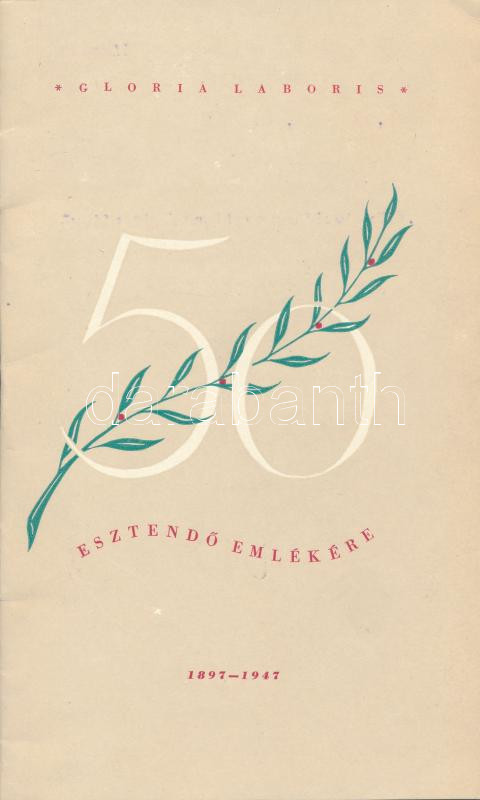 1947 Gloria Laboris 50 esztendő emlékére 1897-1947. Pp.:10, 20x12cm https://www.darabanth.com/de/250-Fernauktion/250.0/Andere-Sammelgebiete/Drucksachen~1400004/1947-Gloria-Laboris-50-esztendo-emlekere-1897-1947-Pp10-20x12cm~II1201294