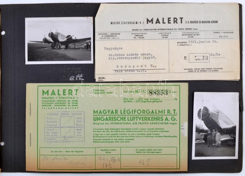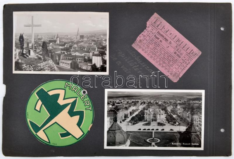 Beschreibung: Malert Légiforgalmi V. utazási dokumentáció Bp.- Marosvásárhely-Kolozsvár vonalon (fényképek, beragasztott képeslapok, reptérre buszjegy, repülőjegy)