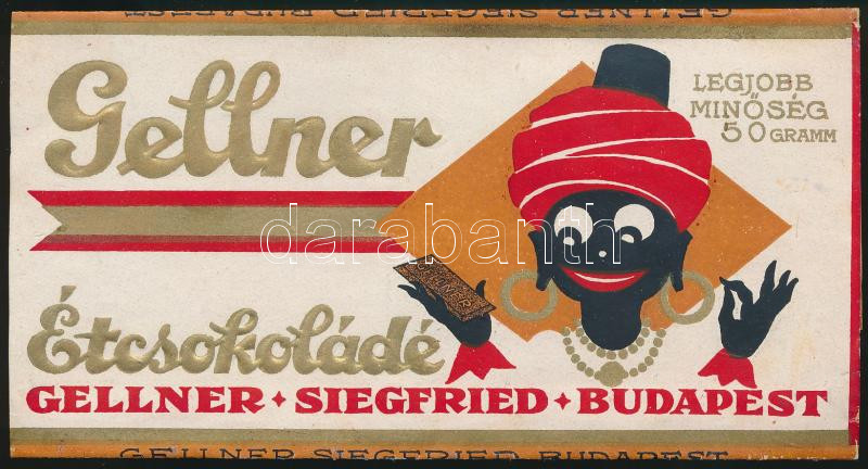 Beschreibung: cca 1900 Gellner Siegfried Étcsokoládé papír, 7x14cm