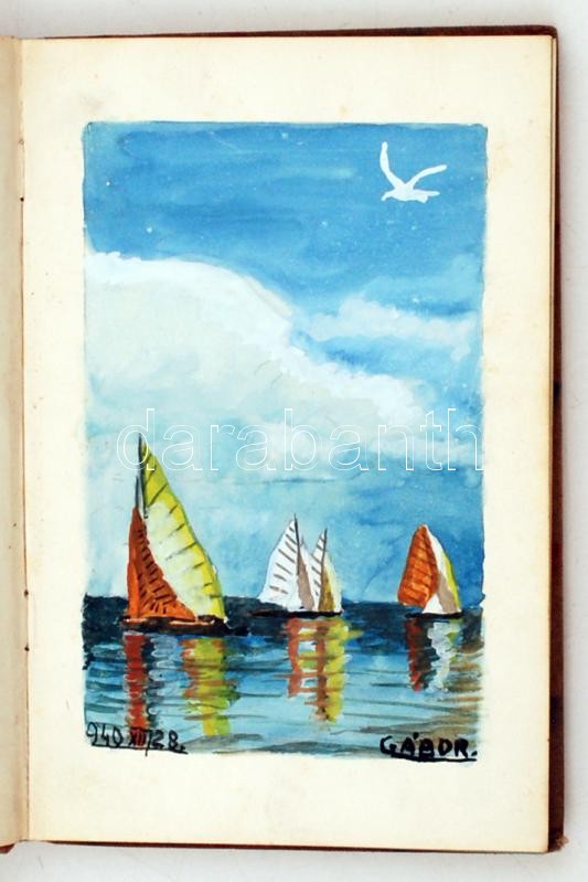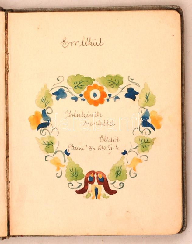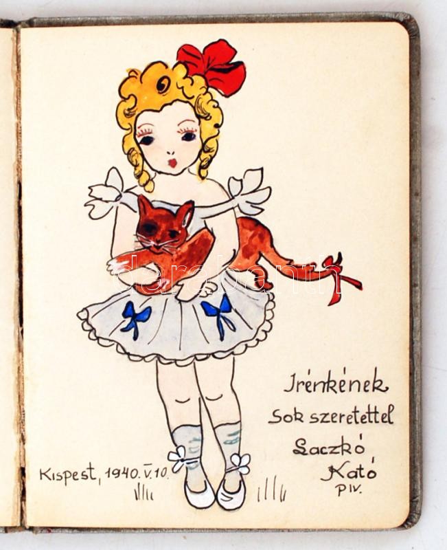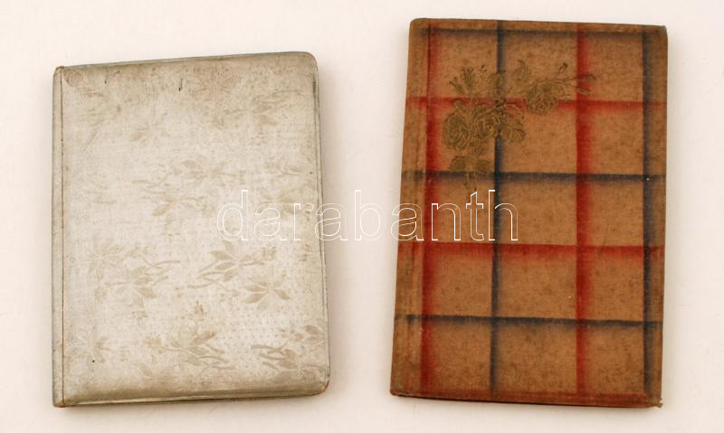 1938-1941 2 db régi emlékkönyv: ezüst, nyomott mintás fedőlappal, benne szép akvarell és más rajzokkal ill. kockás vászonkötésben, aranyozott dombornyomott rózsákkal, benne akvarell és más rajzzal