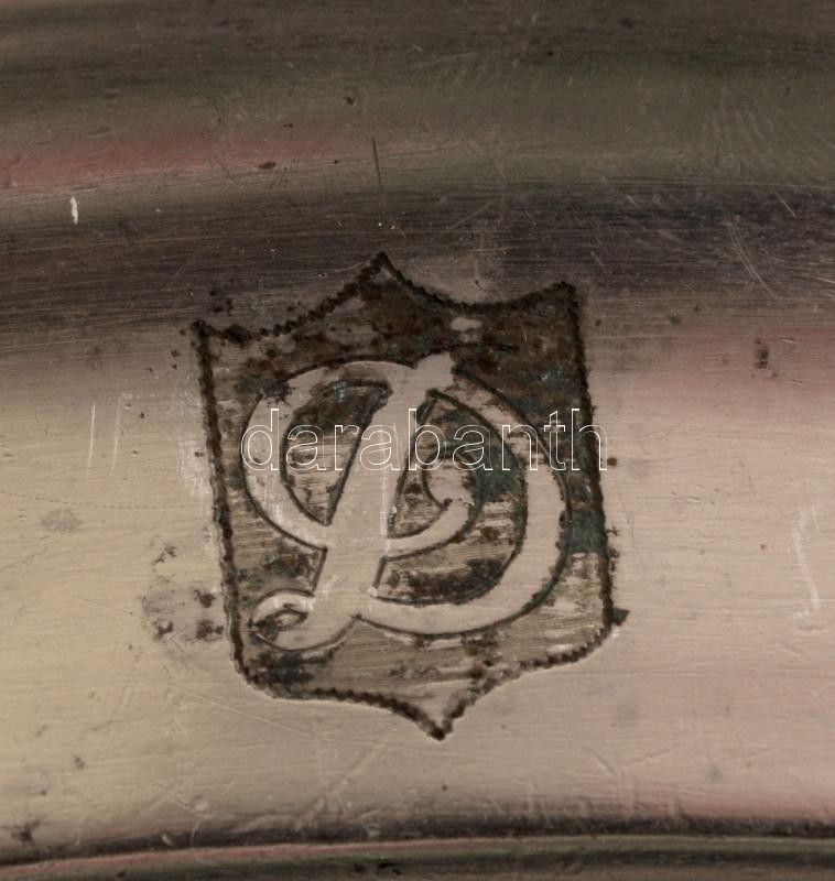 Beschreibung: 3 db fém tálca, kettőm közülük jelzéssel, 32x22 és 38x28 cm közötti méretekben