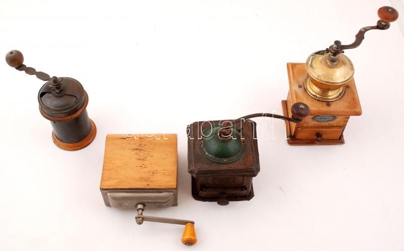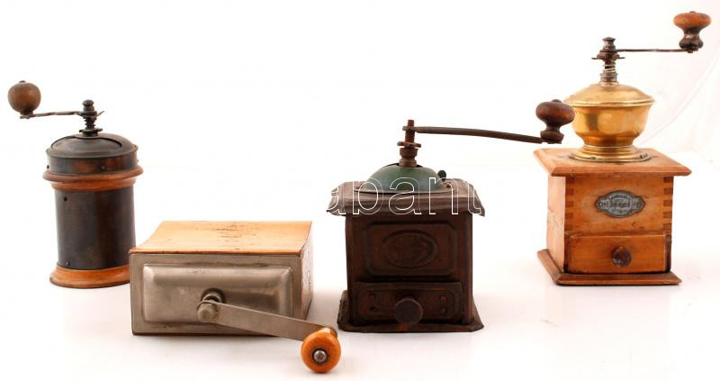 4 db régi kávédaráló, különböző méretben, 7×12-17×22 cm https://www.darabanth.com/de/250-Fernauktion/250.0/Andere-Sammelgebiete/Flohmarkt~1400024/4-db-regi-kavedaralo-kulonbozo-meretben-7C39712-17C39722-cm~II1205968