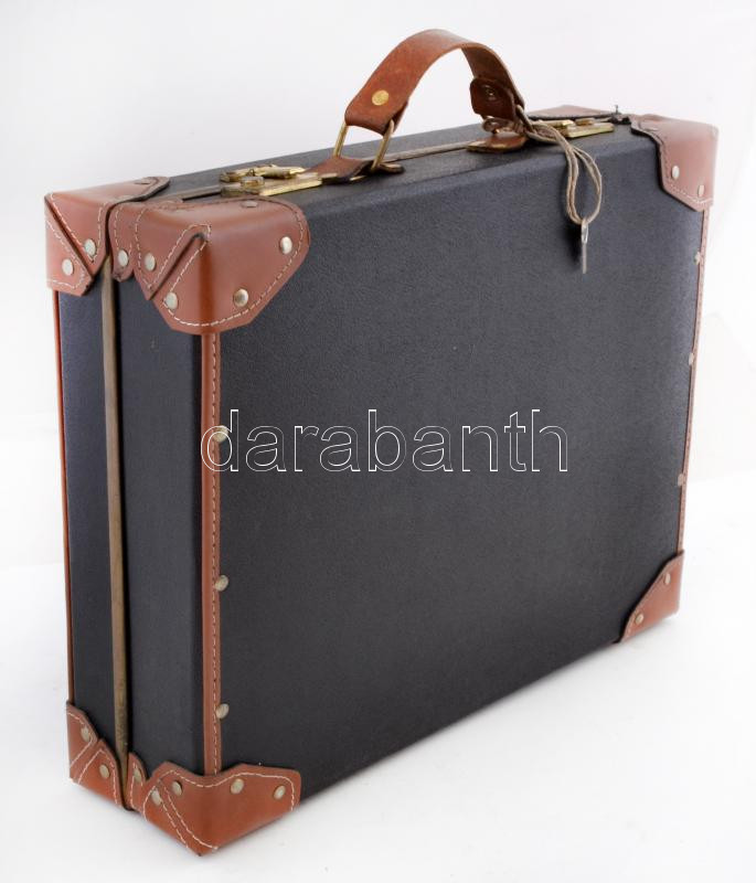 Beschreibung: Barna-fekete bőrönd kulccsal, jó állapotban, 43x12x34 cm