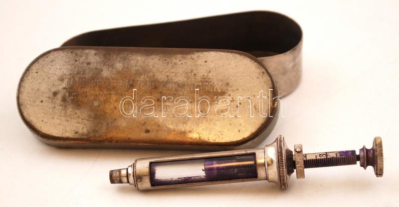 Fém fecskendőtartó fecskendővel, "Laboratórium Védő Oltó Anyagok Terme... https://www.darabanth.com/de/250-Fernauktion/250.0/Andere-Sammelgebiete/Flohmarkt~1400024/Fem-fecskendotarto-fecskendovel-Laboratorium-Vedo-Olto-Anyagok-Termelesere-Reszvenyta~II1208195
