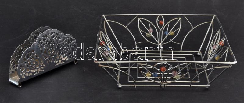 Beschreibung: Gyöngyös fémkosár, 22x22x7cm+ fém szalvétatartó, 8x14cm