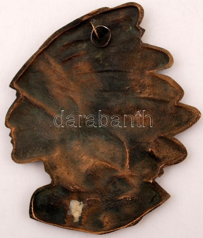 Beschreibung: Indián fejet formázó réz falikép, 20x17 cm