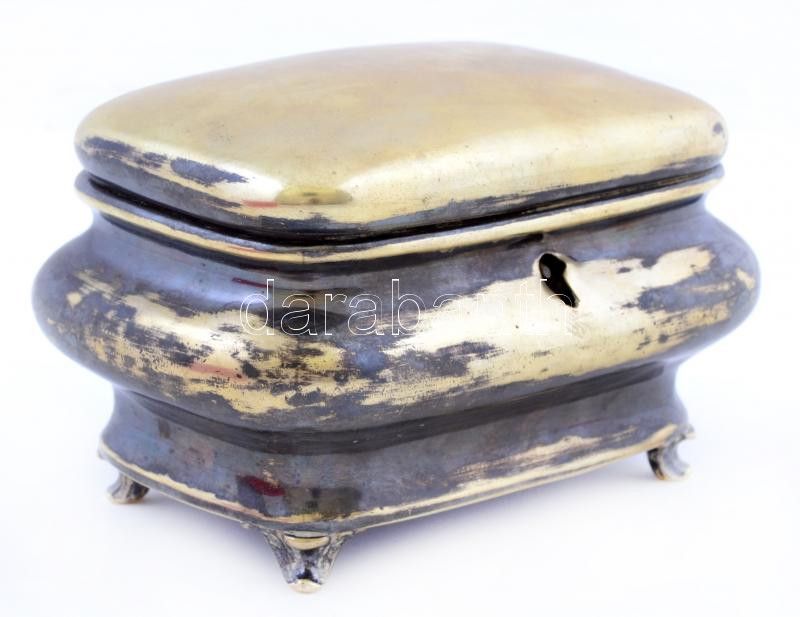 Jelzett cukortartó, ezüstözött alpakka, kulccsal, kopott, 13×9 cm, m:9... https://www.darabanth.com/de/250-Fernauktion/250.0/Andere-Sammelgebiete/Flohmarkt~1400024/Jelzett-cukortarto-ezustozott-alpakka-kulccsal-kopott-13C3979-cm-m9-cm~II1200822