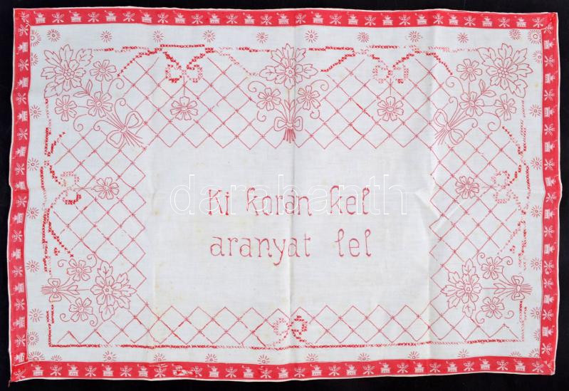 Ki korán kel, aranyat lel, népies, retro hímzett falidísz kép + egy fe... https://www.darabanth.com/de/250-Fernauktion/250.0/Andere-Sammelgebiete/Flohmarkt~1400024/Ki-koran-kel-aranyat-lel-nepies-retro-himzett-falidisz-kep-plus-egy-felirat-nelkuli-100x60-cm~II1065846