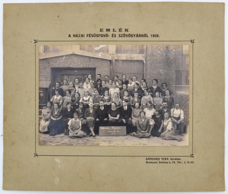 1926 A hazai fésűsfonó- és szövőgyár előfonoda, fotó kartonra kasírozv... https://www.darabanth.com/de/250-Fernauktion/250.0/Andere-Sammelgebiete/Foto~1400037/1926-A-hazai-fesusfono-es-szovogyar-elofonoda-foto-kartonra-kasirozva-11x17cm~II1204500
