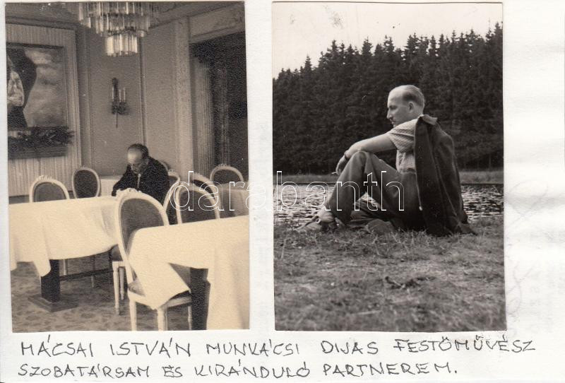 Beschreibung: Mácsai István(1922-2005) magyar festőművész, 2 db papírra ragasztott, feliratozott fotó, 7,5x5,5 cm