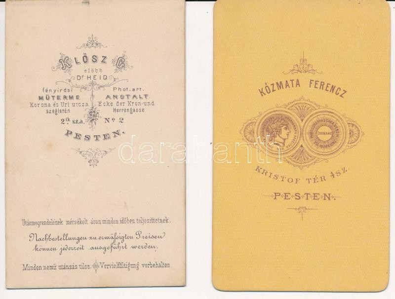 cca 1860-1870 2 db keményhátú portréfotó Kozmata Ferenc és Klösz Györg... https://www.darabanth.com/de/250-Fernauktion/250.0/Andere-Sammelgebiete/Foto~1400037/cca-1860-1870-2-db-kemenyhatu-portrefoto-Kozmata-Ferenc-es-Klosz-Gyorgy-mutermebol-10x6-~II1202519