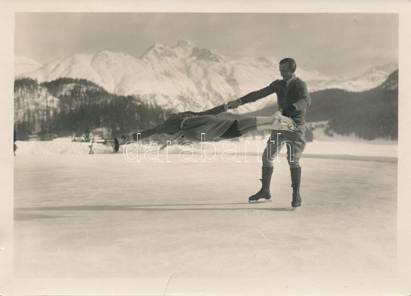 cca 1920-1930 Műkorcsolya St. Moritzban, feliratozott fotó, kis szakadással, 17,5x12,5 cm /