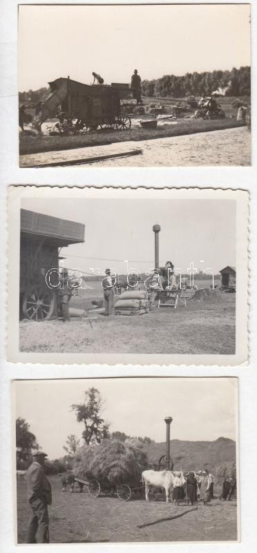 Beschreibung: cca 1930-1950 Munka a földeken, 3 db fotó, 6x9 cm