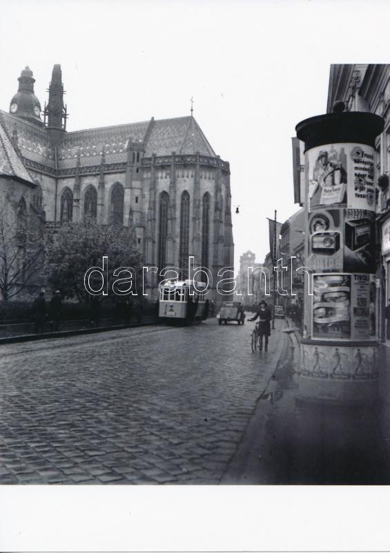 cca 1940 Kassa, 1-es villamos a kassai dóm mögött, korabeli negatívról készült modern nagyítás, 13x13 cm /
