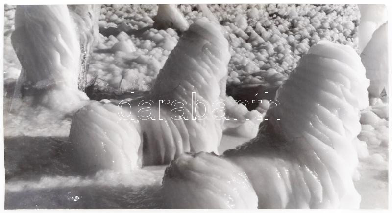 Beschreibung: cca 1960 Krisch Béla (Kecskemét): A jég virága, pecséttel jelzett, feliratozott vintage fotóművészeti alkotás, sarkán törésvonal 21x39 cm