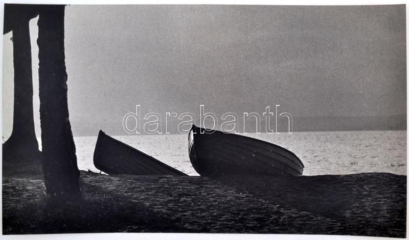Beschreibung: cca 1962 Jónás L.: Csónakkikötő, pecséttel jelzett, feliratozott vintage fotóművészeti alkotás, 22x38 cm