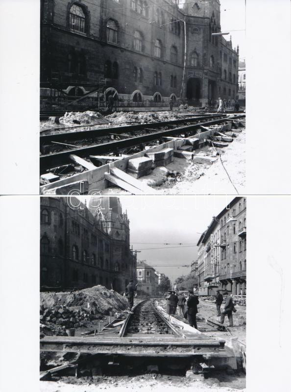 cca 1970 Budapest, a Ferenc körút és az Üllői út sarkán levő aluljáró rendszer építése, 13 db korabeli negatívról készült mai nagyítások, 10x10 cm, 15x10-es fotópapíron